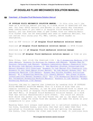 In order to read or download Douglas Fluid Mechanics 5th Edition Solution Manual Pdf Book Mediafile Free File Sharing ebook, you need to create a FREE account.